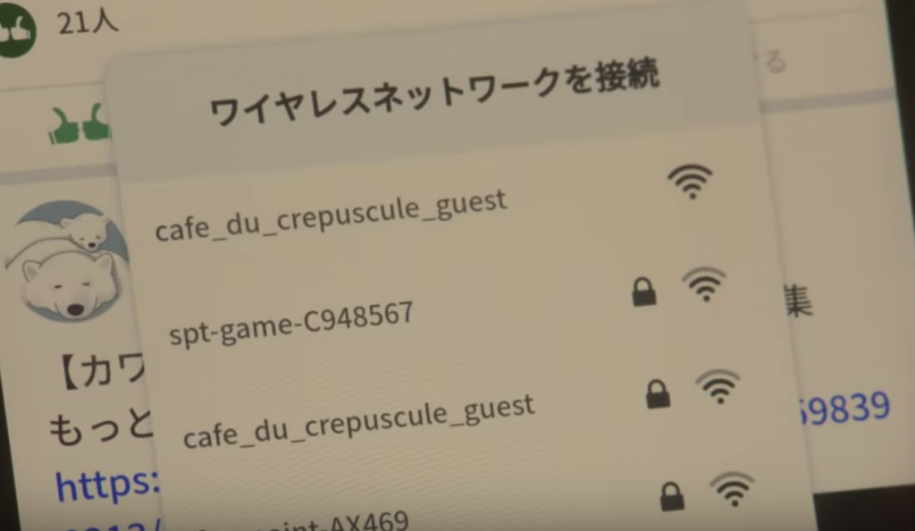 ふと、SNSであるSocial Bookで大好きなふくろうの動画を見ようとした際、カフェのフリーWifiが出てきたことに気づく。